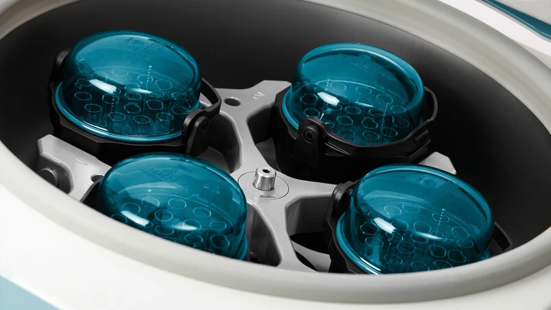 | Max. RCF: 2,665 Max. RPM: 4,000 min-1 Max. capacity: 4 x 100 ml Angle: 90° Standard equipment: Incl. Bio-containment lid Cat.No.: 1624+1372 |